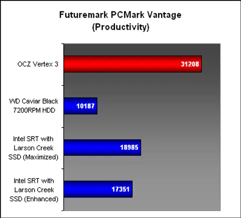 What's left unsaid is that a true SSD solution brings both speed and convenience but at a higher cost. Or at least that's the logic. In our , when we tested Intel SRT, we lacked the time to include the results of a pure SSD-only equipped solution. Now that we have had some time with the Z68 systems, we'll look at how Intel SRT stacks up against a single SSD based drive. Specifically, we tested one of the fastest (and most expensive) SSDs in the market now, the OCZ Vertex 3 (the 240GB version), using the same test setup and benchmarks. (Refer for a detailed breakdown of the test setup). While we've only got the larger 240GB edition for testing, there are cheaper models like the 120GB edition. More importantly, it's using one of the newest SandForce controllers, the SF-2281, which contributes much of the drive's performance. If you're in the market to get a new SSD, this is one of the drives to aim for and thus, our reason to enroll the Vertex 3 in this test.