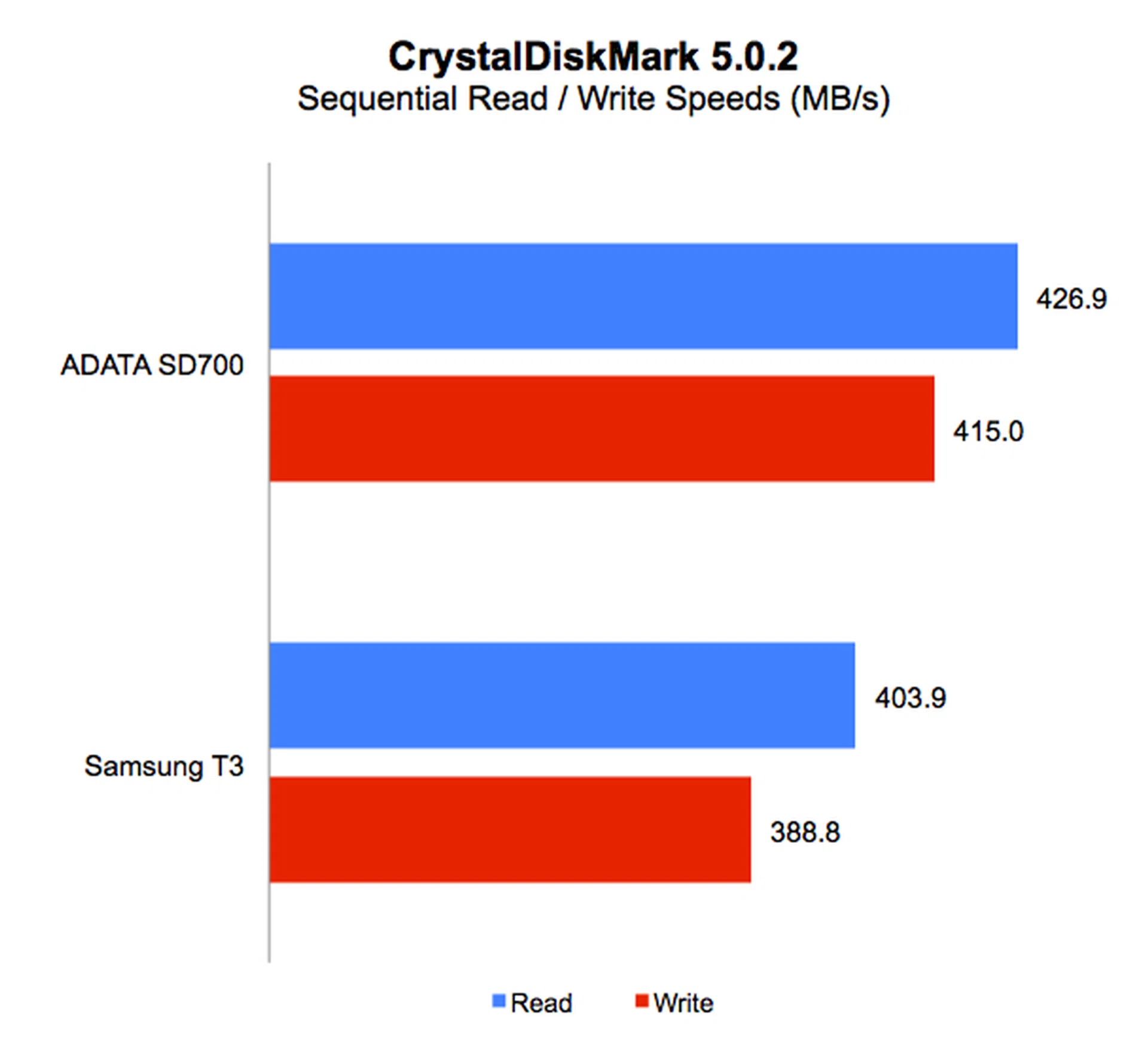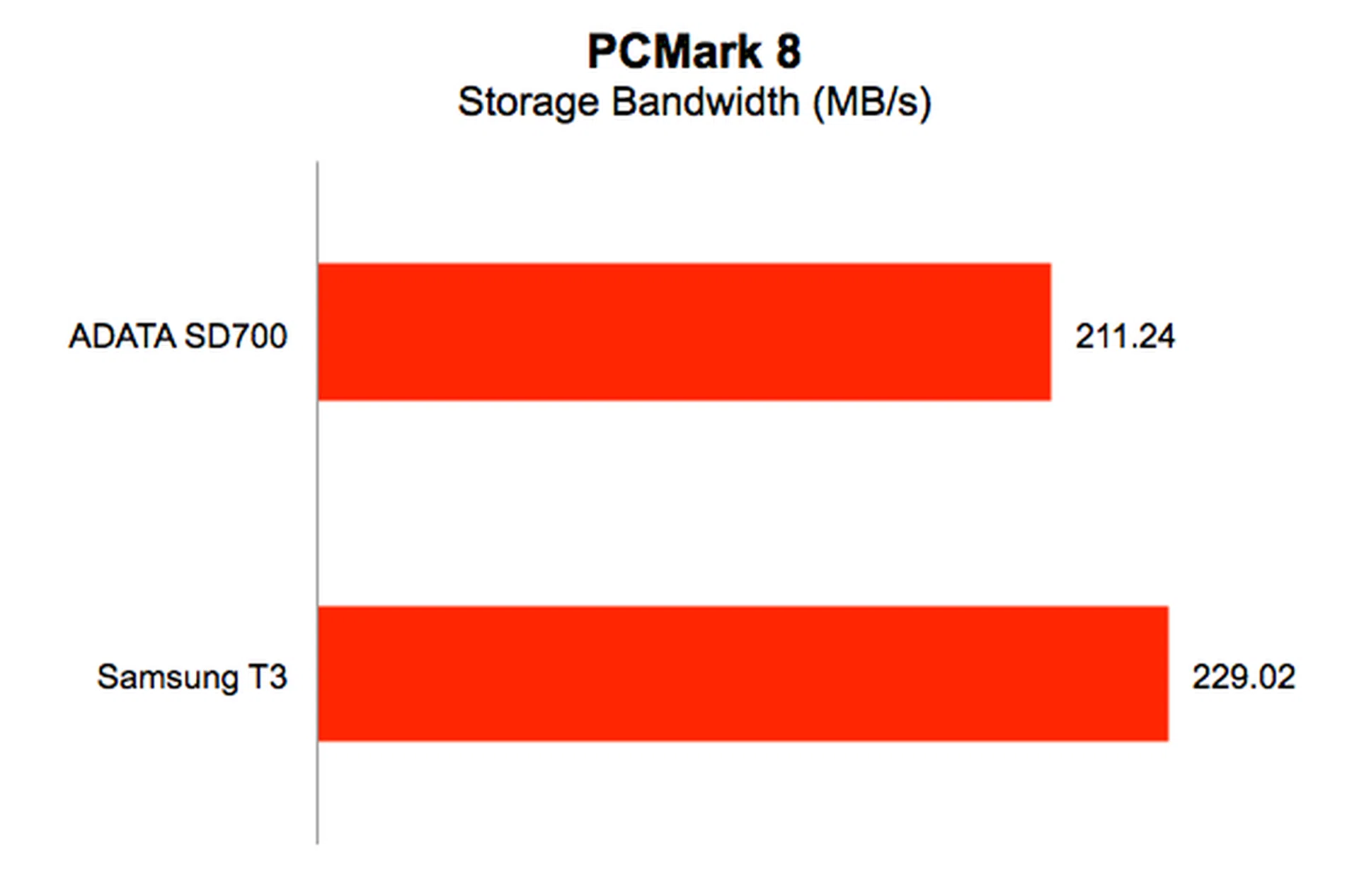 Like the Samsung T3, the ADATA SD700 also supports UASP. UASP or (USB Attached SCSI) protocol is a standard aimed at improving USB 3.0 performance by transferring data and commands in separate "pipes" and executing multiple commands in parallel. So if you have a compatible system (most modern systems running Windows 8 and Mac OS X 10.8 and above should support UASP), one can expect better performance.