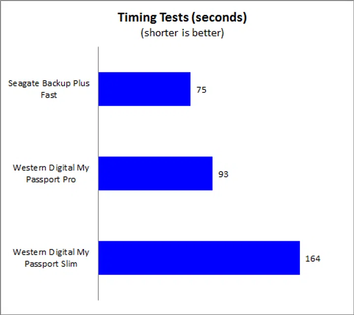 To complement the benchmarks, we will also be conducting a timed run to see how long it takes to transfer around 15GB worth of videos, music, and photos. We added results from the Western Digital My Passport Slim, winner of our Tech Awards 2014 Best 2.5-Inch Portable External HDD category to act as a baseline reference.