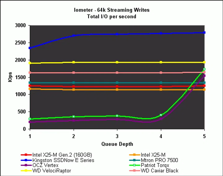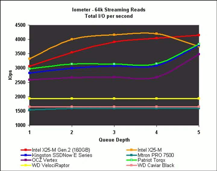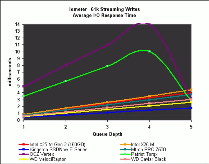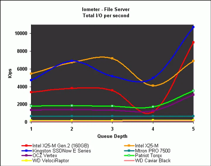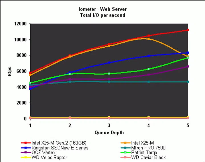 Surprisingly, the file server workload fared better on the first generation X25-M drive than the G2 edition, but the drive caught up as we ramped up the workload. Web server performance however was chart topping, beating even the Kingston enterprise drive based on Intel's SLC class drives.