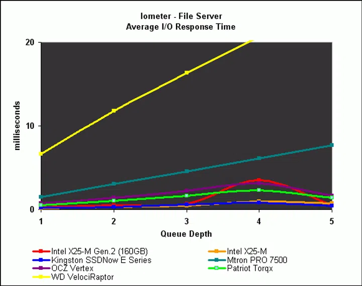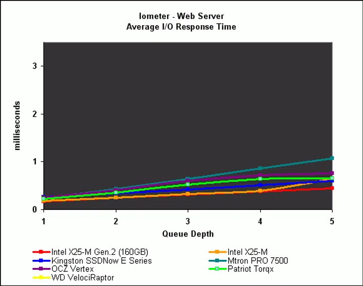Continuing on with response times for both file server and web server profiles, the new Intel X25-M handled it rather well as well. The mechanical had drives are showing their technology difference in these tests.