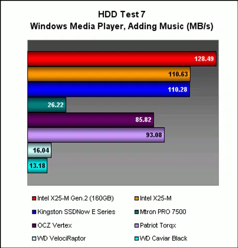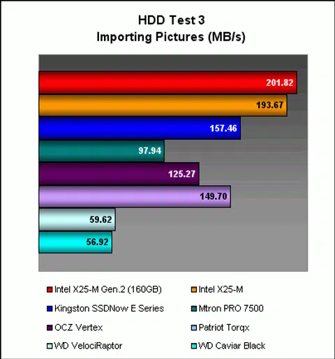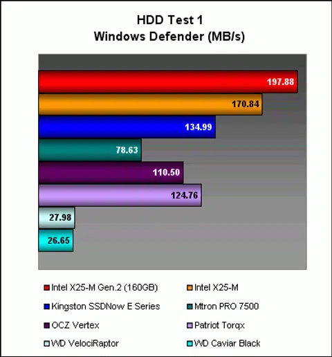 As a baseline of sorts, we've results for two mechanical hard drives in our comparison. The first is Western Digital's (WD) well-known 10,000RPM drive, the speedy WD VelociRaptor (WD3000GLFS) to represent the high-end enthusiast offering for storage and a 1TB 7200RPM WD Caviar Black (WD1001FALS) with a 32MB cache to stand in for an example of a typical hard drive currently.