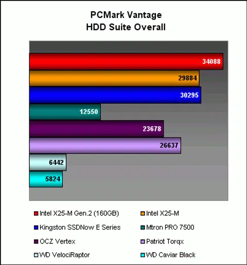 If you thought the original X25-M was doing swell in these real-world scenarios, the newer and more refined second generation X25-M unit outdoes its earlier sibling and its enterprise variant too. This presumably hints that the PCMark Vantage tests have more read-based routines than write-based ones. And indeed you can see that the new drive does really well in all the read-heavy tasks like loading applications, Windows Startup and Windows Defender scanning. Even in tests where write-related tasks coming heavy, the new drive has shown marked improvements over its predecessor. So far, the new drive seems to be in a positive light.