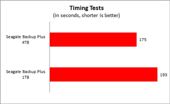 For our timing tests, we recorded the time it took for us to copy a 15GB large folder containing movies, photos and music to the portable external hard disk drive. The new 4TB Backup Plus was about 10% faster, recording a time of 175 seconds.