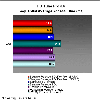 Sequential and random drive access times are pretty welcoming on the Seagate FreeAgent GoFlex Pro drive thanks to its 7200rpm design.