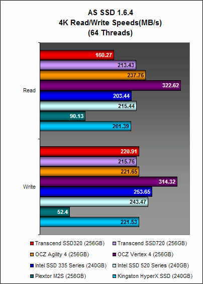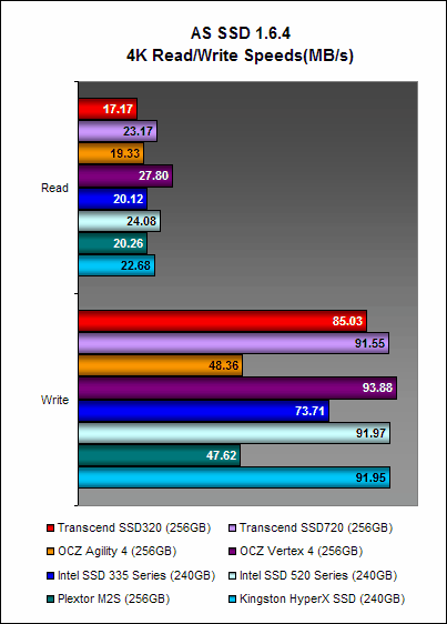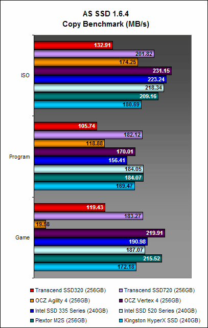 AS SSD is a benchmark that uses non-compressible and completely random data. What this means is that the drives using the SF-2281 controller cannot compress the data first, which takes away one of the strong advantages of this controller. Therefore this is a useful benchmark because drives that use the SF-2281 don't gain an upper hand.