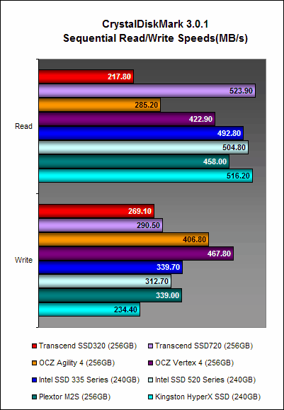 The Transcend SSD 320 is one of the few SSDs with asynchronous NAND memory that we’ve tested and it will be interesting to see how it matches up against Transcend’s own SSD720, which uses quicker Toggle Mode NAND. Also, key comparisons will be made against the OCZ Agility 4, which is also equipped with asynchronous NAND memory. Included in our performance analysis is also the duo from Intel - the SSD 520 and SSD 335 Series - as well as the Plextor M2S and Kingston HyperX SSD.