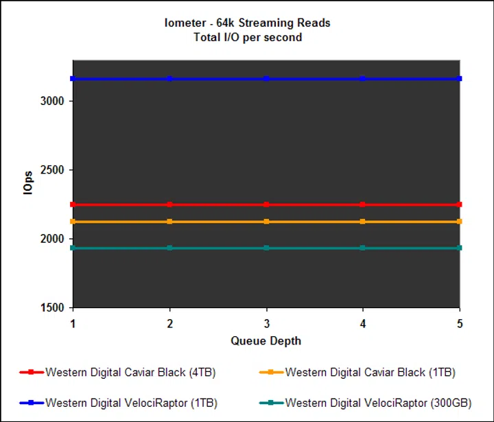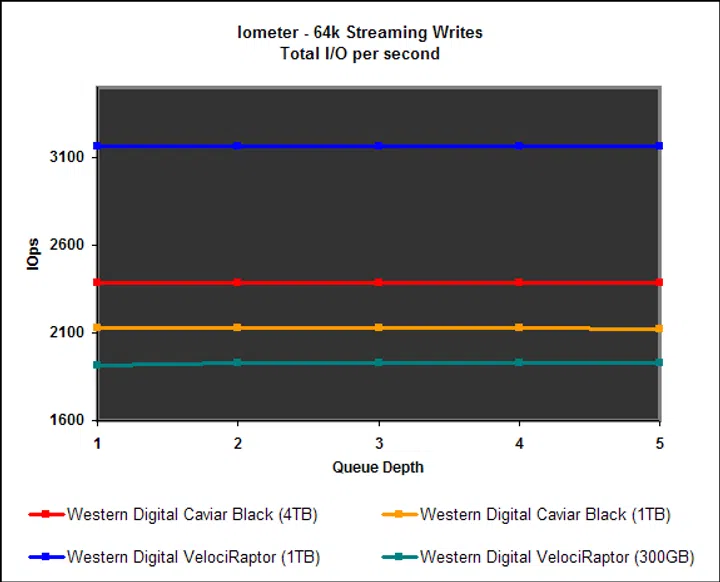 The WD Black 4TB drive exhibited strong read and write speeds on the sequential and 512k workloads as it was convincingly quicker than the 1TB variant of the WD Black and also the old VelociRaptor drive. However, it lost its advantage when coming to the 4k and 4k, 32 queue depth workloads. While the previously reviewed 1TB VelociRaptor drive was no match for SSDs, it was leaps and bounds ahead of all the drives here.