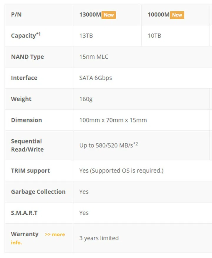 Here are the specs for the SSD and the smaller 10TB Fixstars SSD-10000M.