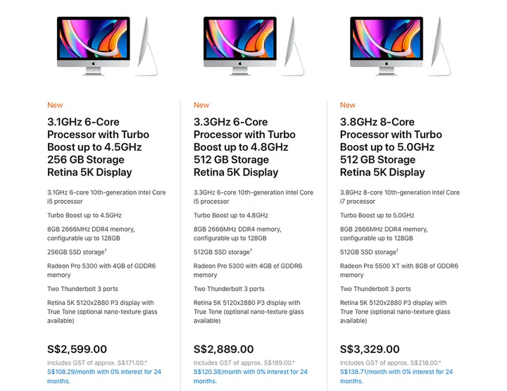 The new 27-inch iMac will be available in three off-the-shelf configurations with prices starting at S$2,599. They are available now.