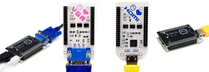 Powered by a 1GHz A13 Allwinner SoC (system-on-chip), Chip has 512MB of system RAM, and 4GB of NAND storage. Measuring just 60mm in length, and 40mm in width, Chip manages to cramp in a Wi-Fi 802.11 b/g/n and a Bluetooth v4.0 module for wireless connectivity. There’s also a full-sized USB port and a microUSB one. There’s also a 1/8" composite video and audio mini-jack. However, in order to get video output, you need to purchase a separate daughter boards called shields. They come in two versions; the HDMI shield and the VGA shield. They snap on conveniently to Chip. In terms of hardware specifications, Chip appears to be ahead of the Raspberry Pi 2 Model B that is powered by a 900MHz ARM Cortex-A7 processors, with 1GB of RAM. The Raspberry Pi 2 Model B doesn’t come with any onboard storage except a microSD card slot for storage expansion.