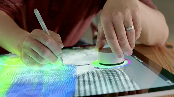 Surface Dial is a product meant to help creators change and speed up their workflows. It can be used on the desk or on the Surface Studio's display itself to create radial menus for quick actions and processes. It looks pretty nifty, and has to be seen in action to fully appreciate how it works. The Surface Dial will also work with Surface Pro 3, Surface Pro 4, and the Surface Book.