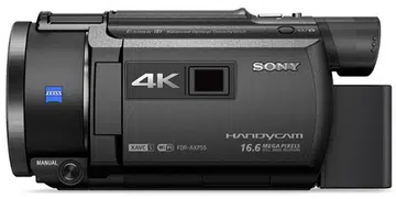 The Sony Handycam FDR-AXP55 4K camcorder has a 20x optical zoom lens and built-in projector