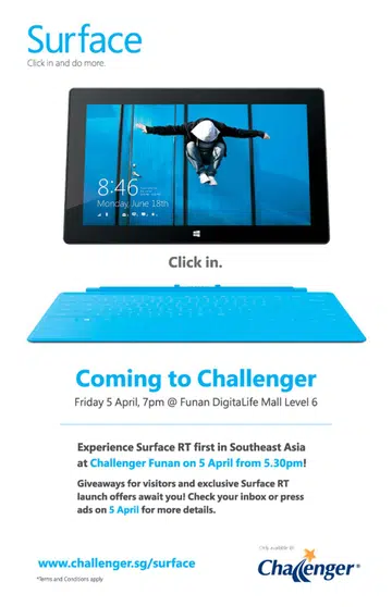 Microsoft Surface RT to Start Retailing at Challenger, Funan on 5th April, 7PM
